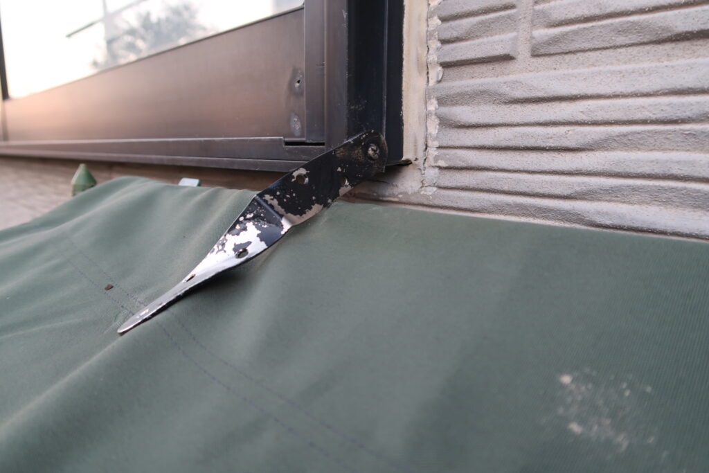 園芸用のアルミ支柱を壁に取り付ける方法は・・外壁に釘を打ったりするのは外壁の劣化を早めるのでそれはしないで、サッシ窓のネジ部分を利用して散る付る金具を廃品はら利用して作ってみた、案外いい方向になった。